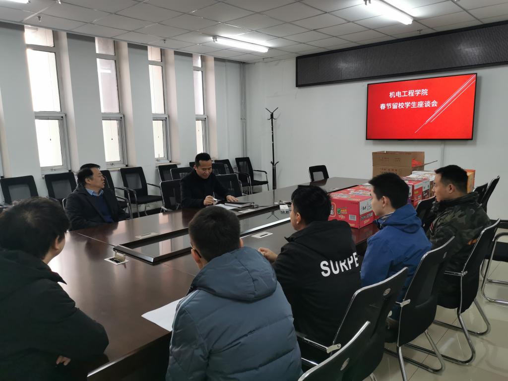 2月9日,在科学楼313会议室,学院召开春节留校学生座谈会。院党委书记罗建国、副书记刘光、科研科科长赵心远等老师参加会议。会上罗书记向同学们送上新年祝福,祝大家度过一个安全祥和的春节,并强调,假期一定要遵守校规校纪,强化安全意识,遇有紧急情况要及时和导师(班主任)沟通,与家里亲人保持联系。
