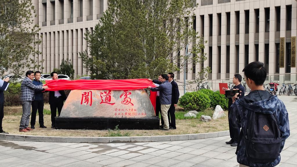 罗建国书记、李世中副院长、赵河明副院长、韩晶老师和校友代表共同为纪念石揭幕,王院长向校友颁发熟女av