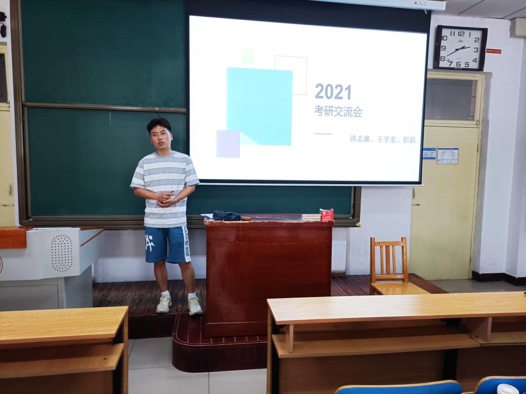 交流会上,王宇宏同志就跨专业、院校选择、找工作等方面分享了自己的经验,他鼓励大家认清自己,正确定位,勇敢去追求自己想要的目标;洪志雄同志向大家介绍了考研的大致流程,讲了备考过程中可能遇到的问题和应该注意的事项;彭滔同志结合自己工作后再考研的经历,从考研心态、日常作息等方面分享了自己的经验,他希望大家注重心态调节,注意学习方法。随后,在提问环节中,三位同志对大家提问的问题作出了详细的解答,并提出了针对性建议。