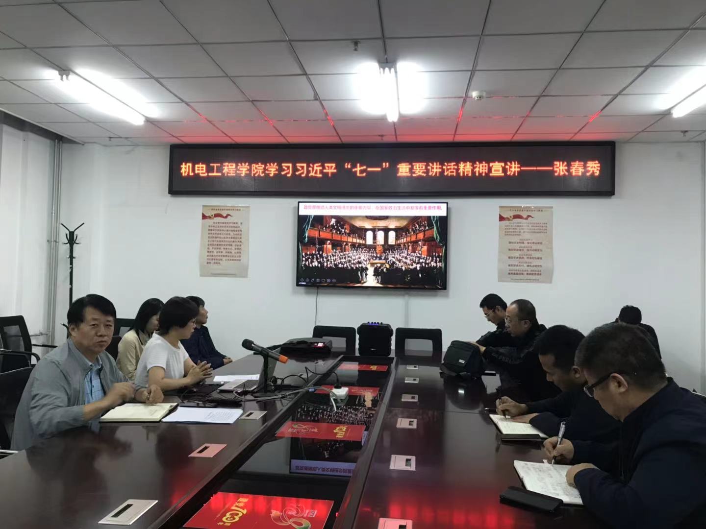 于9月23日下午4点在313会议室组织教工党员学习习近平总书记“七一”重要讲话精神,邀请校党史学习教育理论宣讲团成员、马克思主义学院张春秀副教授作为主讲嘉宾,学院党委书记罗建国主持宣讲会。