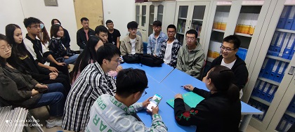 团委书记李晶晶老师主持,参加会议的有团委副书记王华伟、学生会主席陶露、分科协主席左清银,以及所属各部门部长。