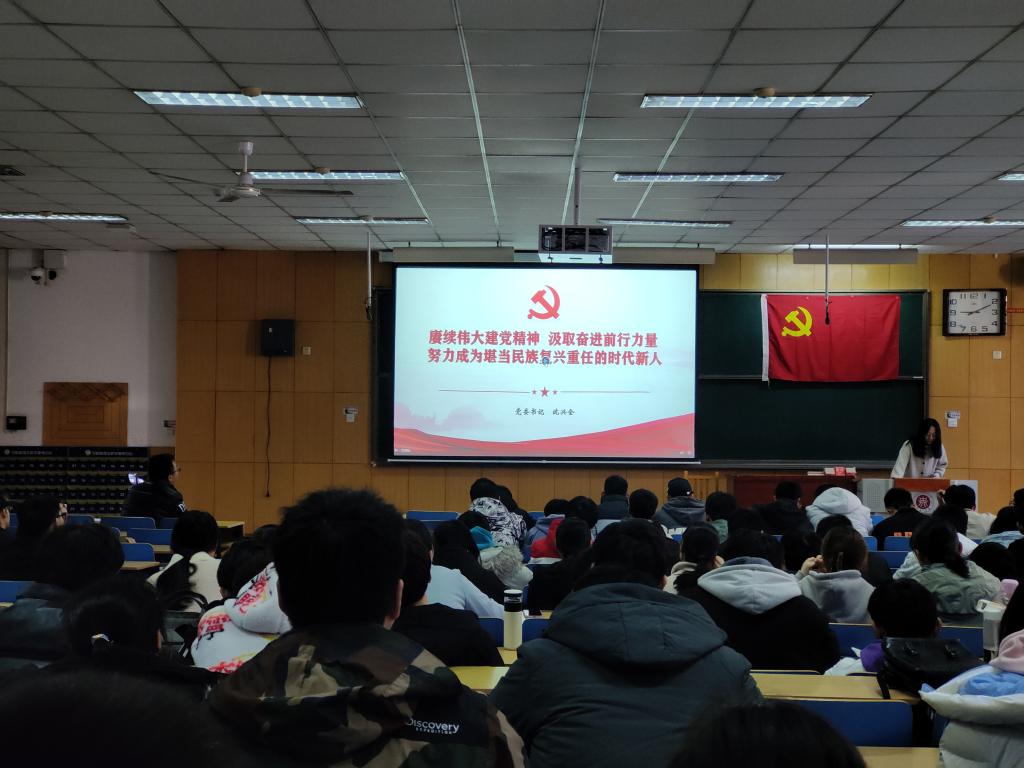 讲座伊始,沈书记通过讲述中国共产党的四个阶段成功将同志们引入今天的主题。沈书记说我党的四个阶段可以概括为“开天辟地”、“改天换地”、“翻天覆地”和“惊天动地”。随后,沈书记从大型历史剧《觉醒年代》的内容和精神内涵出发,给大家讲述如何准确把握伟大“建党精神”的科学内涵,并纠正了大家对“参加革命的都是穷苦人民”的错误认知。他还为大家介绍了以张桂梅同志为代表的一批批优秀共产党员的伟大、感人事迹,鼓励各位大学生党员一定要以优秀党员为榜样,形成正确的世界观、价值观和人生观,树立远大的理想,坚定不移地跟随中国共产党的前进方向,努力跑好属于新时代青年的这一棒。