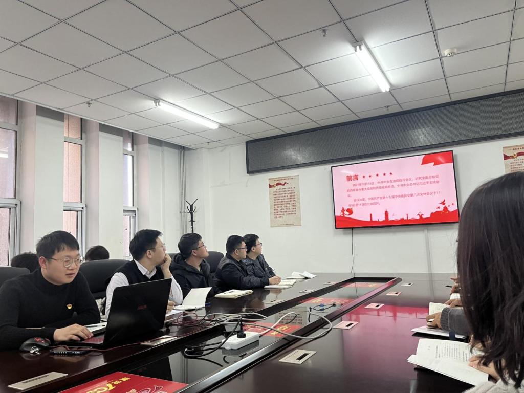 党的十九届六中全会是在我们党百年华诞的重要时刻,在“两个一百年”奋斗目标历史交汇关键节点上召开的一次重要会议,议题重大、影响深远,在党的历史上具有重要里程碑意义。支部第二党小组组长张梦飞同志作为主讲人,围绕“中国共产党第十九届中央委员会第六次全体会议”及《中共中央关于党的百年奋斗重大成就和历史经验的决议》,从基本情况、主要议程、公报解读三个方面进行讲解,带领大家学习党的百年奋斗重大成就和历史经验总结。支部各成员展开深入交流研讨,并发表学习心得与个人感想。