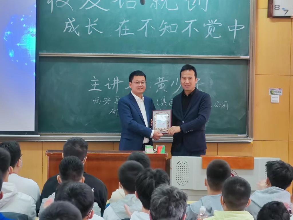 黄少保校友以“成长,在不知不觉中”为宣讲主题,他先是分享了自己的工作经历和公司情况,向同学们介绍了“847”厂的航空特种装备。黄少保校友通过讲述自己的学习经历,指出学习并不是单一的,学习是持续的,是有目标的,是多方面的。在完成专业课学习的同时,利用学院丰富的资源来提升个人能力是非常重要的。在生活方面,他还倡导同学们互帮互助,团结友爱,珍惜友情。