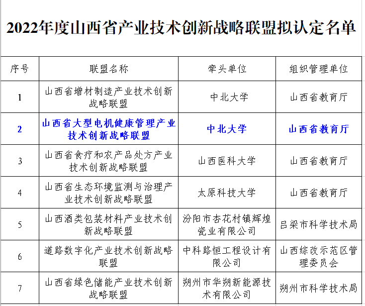 申报的山西省大型电机健康管理产业技术创新战略联盟获得认定。