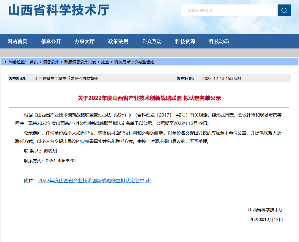 根据省科技厅“关于2022年度山西省产业技术创新战略联盟拟认定名单公示”,熟女av