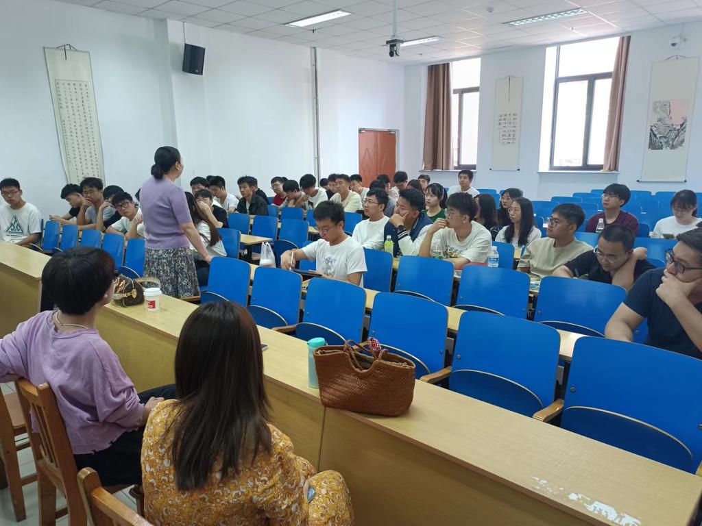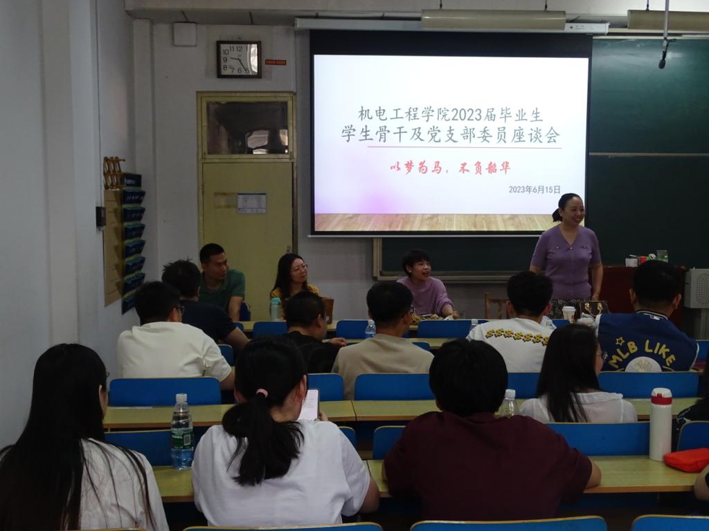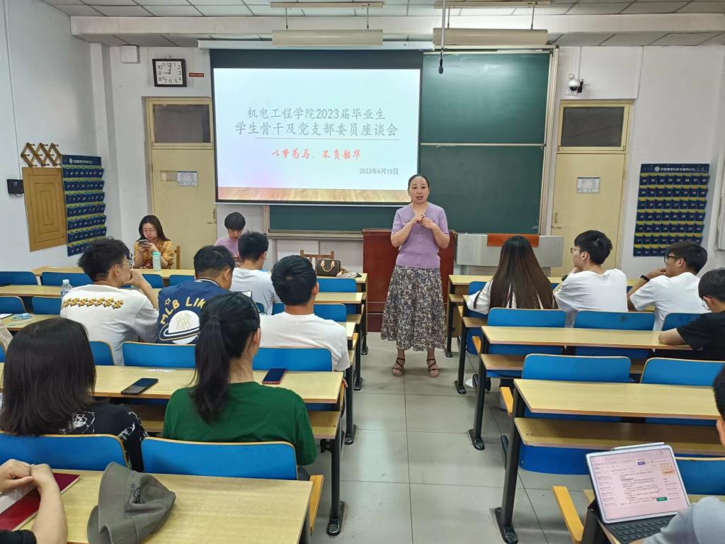 在11110教室召开2023届毕业生学生骨干及党支部座谈会。出席此次会议的有辅导员贺婧老师、张悦老师、邢培岩老师、毕业生代表、学生骨干以及党支部学生,本次会议由院团委书记李晶晶主持。