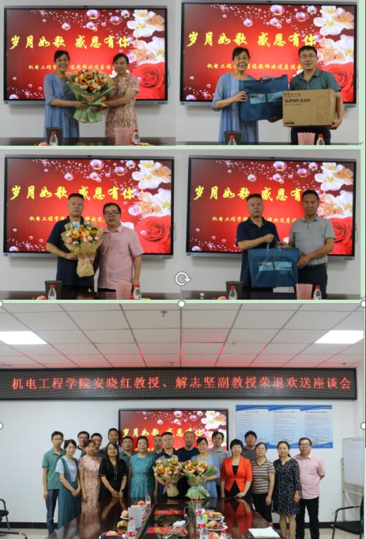 隆重举办了教师荣退欢送座谈会,学院领导、探测与控制工程系、武器发射工程系教师齐聚一堂,共同欢送安晓红、解志坚两位教授光荣退休。