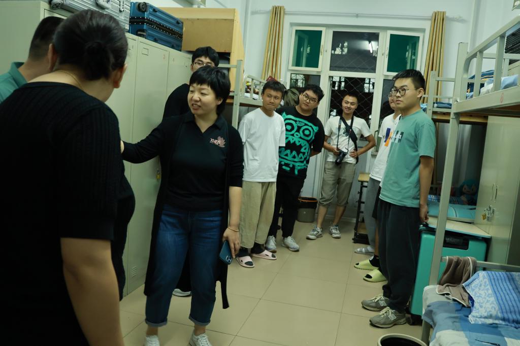 院长尹建平、院党委书记赵永娟、院党委副书记刘光、副院长李世中、综合办主任崔俊杰、教学科科长李霞、院团委书记李晶晶、全体辅导员及新生班主任一同来到新生宿舍,给同学们送去了关怀与祝福。