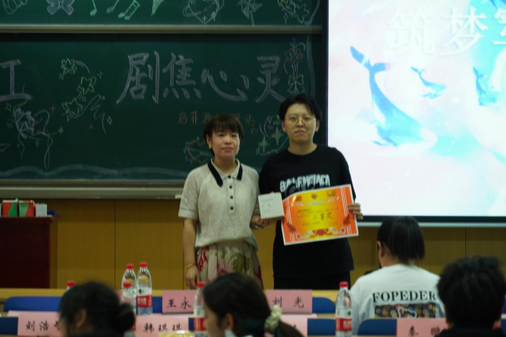 两个小时精彩的表演,激烈的角逐,最终,23010343班的《遇见曾经》获得本届心理剧大赛一等奖,23010442班《筑梦师》获得二等奖,23010441《平行时空饭店》获得三等奖,分别由院党委副书记刘光老师、院团委书记李晶晶老师、学生科贺婧老师为他们进行颁奖。心理剧大赛在大家的庆祝欢呼声和愉快的笑声中结束。