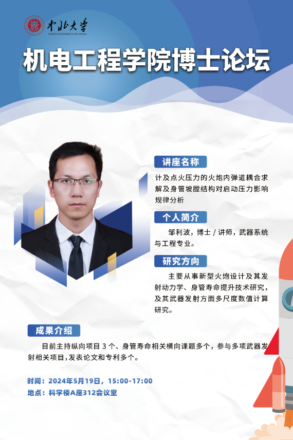 在科学楼A座312会议室举办了以“枪炮身管失效机理与寿命提升研究”“计及点火压力的火炮内弹道耦合求解及身管坡膛结构对启动压力影响规律分析”为主题的学术讲座。本次讲座由赵心远主持,赵超、邹利波老师主讲。