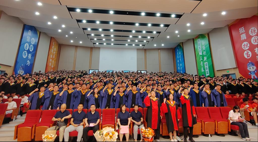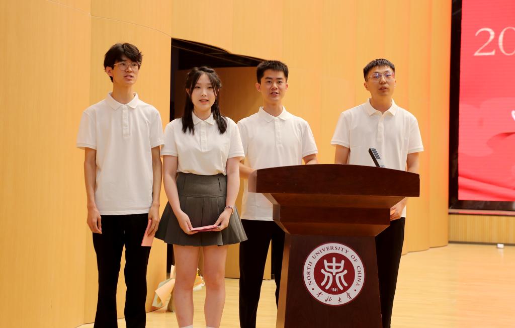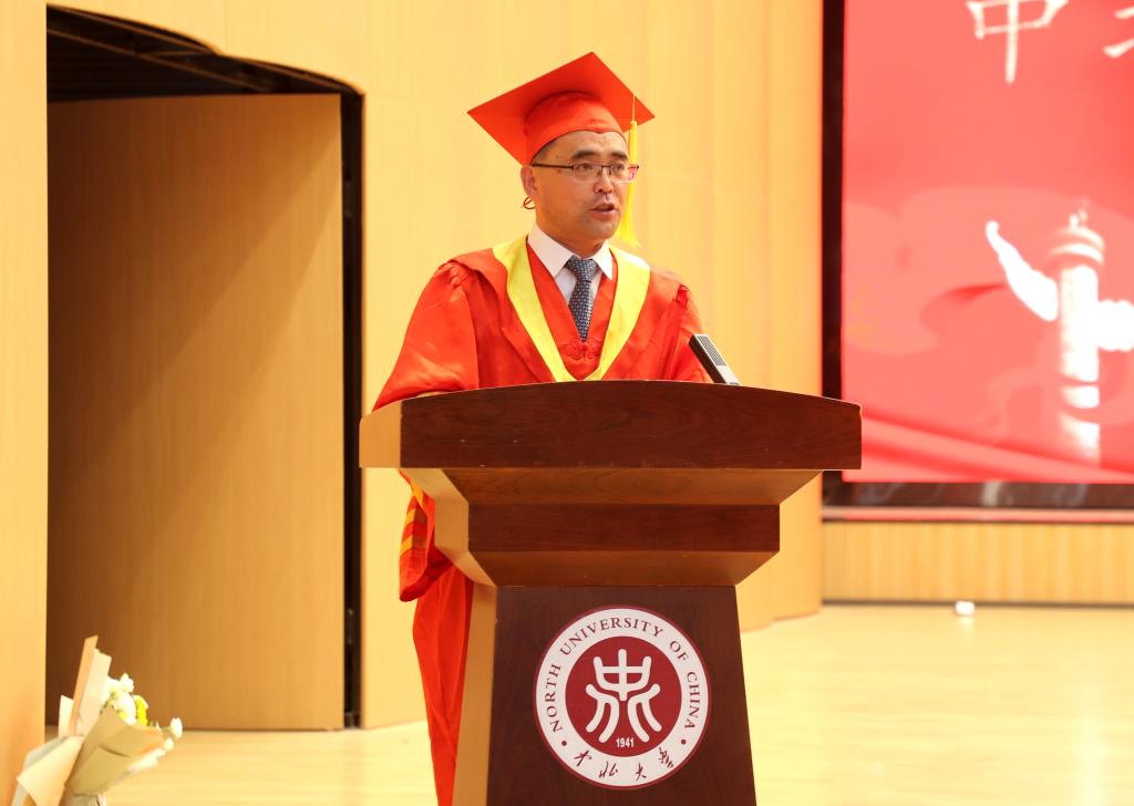 毕业班班主任送上毕业寄语,祝2024届毕业生毕业快乐,前程似锦。本硕博毕业生代表胡永亮、龙玥颖、范宏辉、乔炳旭依次发言,他们表示必定不负众望,心怀国家,回报社会,传承中北机电人的精神,砥砺前行。在校生代表张婧为学长学姐送上浓浓问候和满满祝福。2024届博士毕业生林松和周东龙向学院捐赠纪念品,表达对学院培养的感恩之情,之后,全体2024届毕业生在贺泽仁领誓下庄严宣誓。
