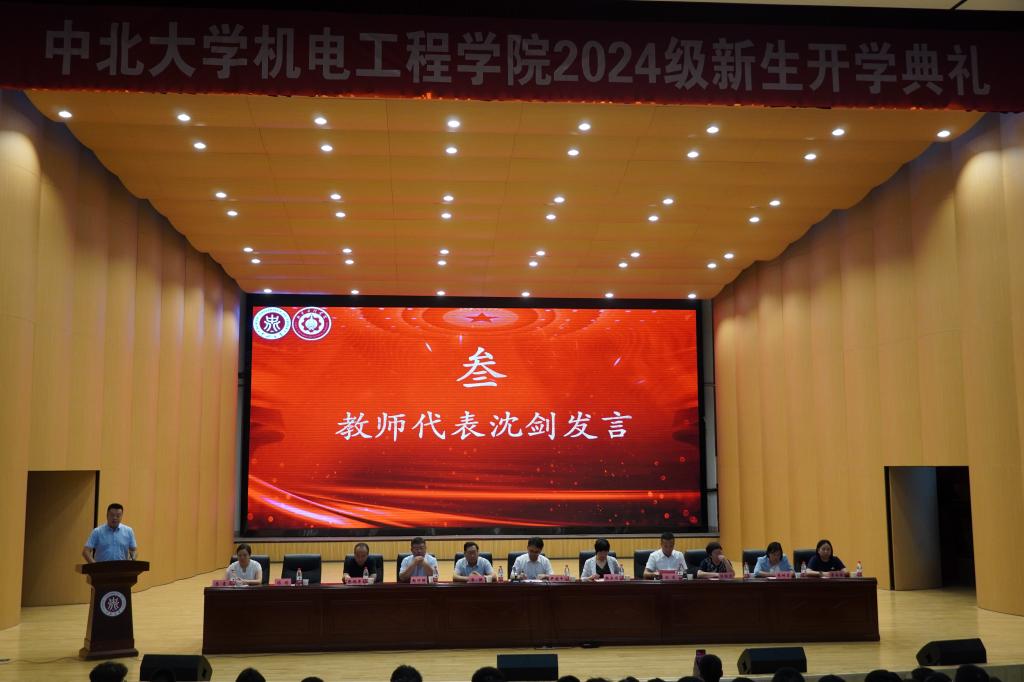 教师代表沈剑老师发言,他为新生们送上深情寄语。大学是一个全新的开始,学习始终是大学生活的主旋律,除了学习专业知识,还要注重综合素质的培养。最后,他送给全体新生一句话“青春由磨砺而出彩,人生因奋斗而升华“。