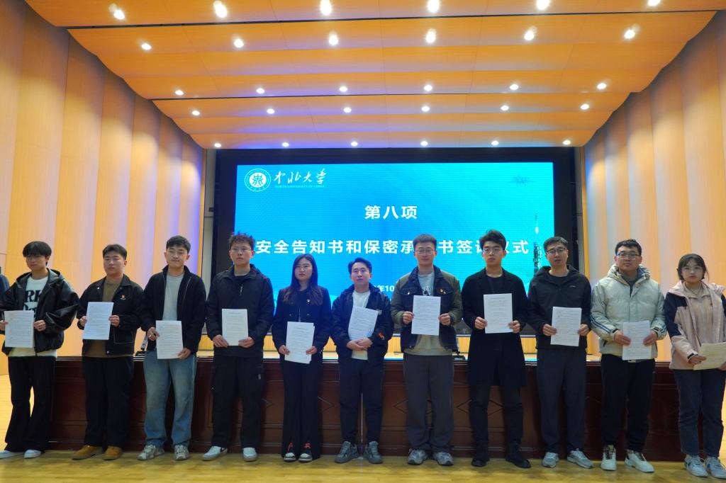 院研究生会成员张帆带领全体研究生进行宣誓,承诺秉承学院培养理念,热爱祖国、爱校荣院、遵守保密。宣誓结束后,研究生各班学生代表签订了《熟女av