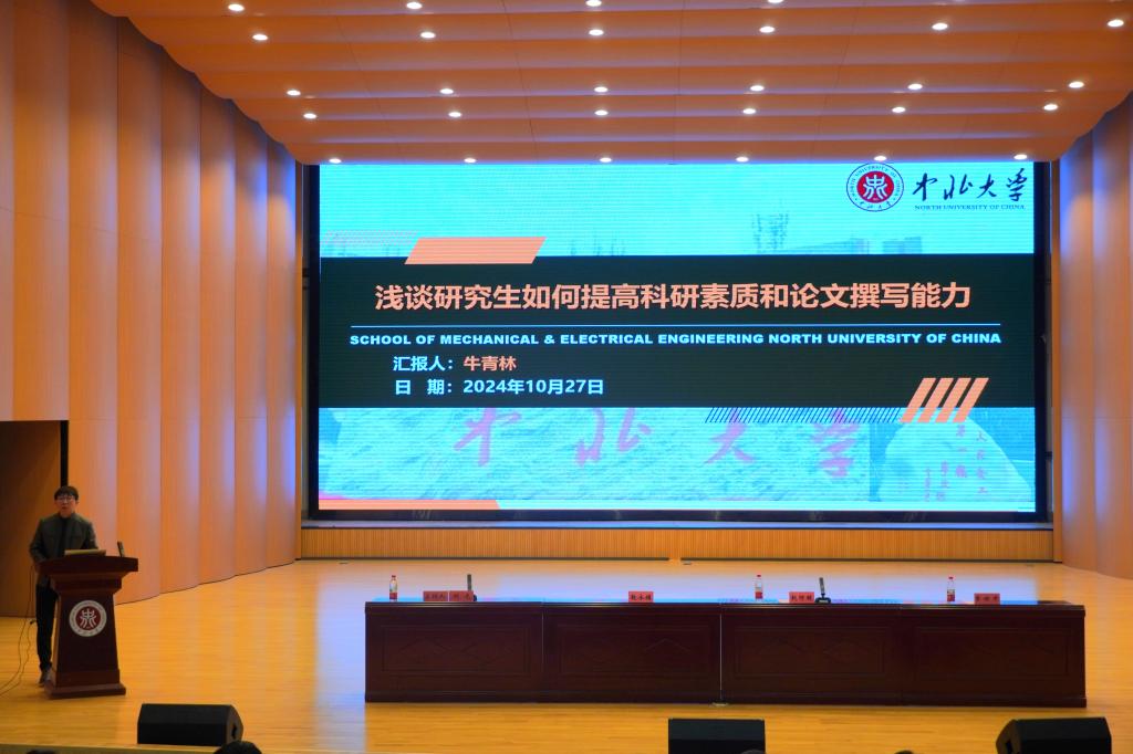 学院牛青林教授以《从自身求学经历浅谈研究生如何培养科研素质》为题,从研究生学习与学术论文的关系、学术论文的构思心得、学术论文撰写心得等三方面进行分享。牛教授指出论文撰写是个系统工程,论文不是“写”而是“做”,从论文确定方向、问题、思路、方法、实验验证以及撰写做了详细讲解。牛教授的报告深入浅出,为研究生们提供了宝贵的科研经验和建议,赢得了在场师生的热烈掌声。
