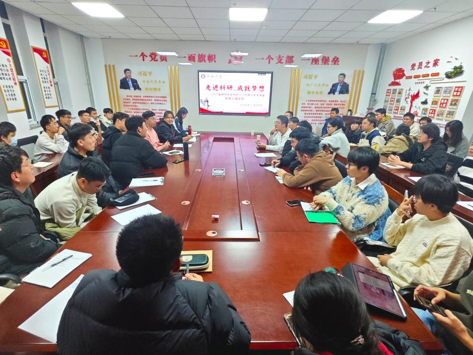 在科学楼A座党员之家举行了2025届保研学生科研入门与规划学术讲座。本次讲座邀请了张克斌副教授和张海龙副教授作为主讲嘉宾,院党委书记赵永娟、辅导员王永文老师以及保研的57名同学参加了讲座。