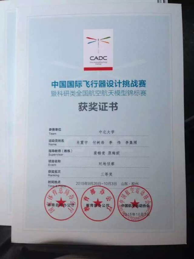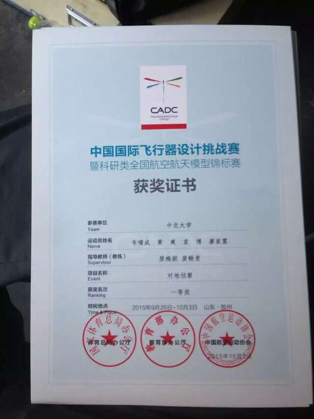 中国国际飞行器设计挑战赛暨科研类全国航空航天模型锦标赛CADC“2015”是由国家体育总局、教育部、中国国际飞行器设计挑战赛组委会共同主办的一项大型国家级赛事,于2015年9月26-10月3日在山东胶州顺利召开。该比赛吸引了清华、北航、北理工、西工大、西交大、南航等100余所高校参赛。山西省参加的高校有熟女av