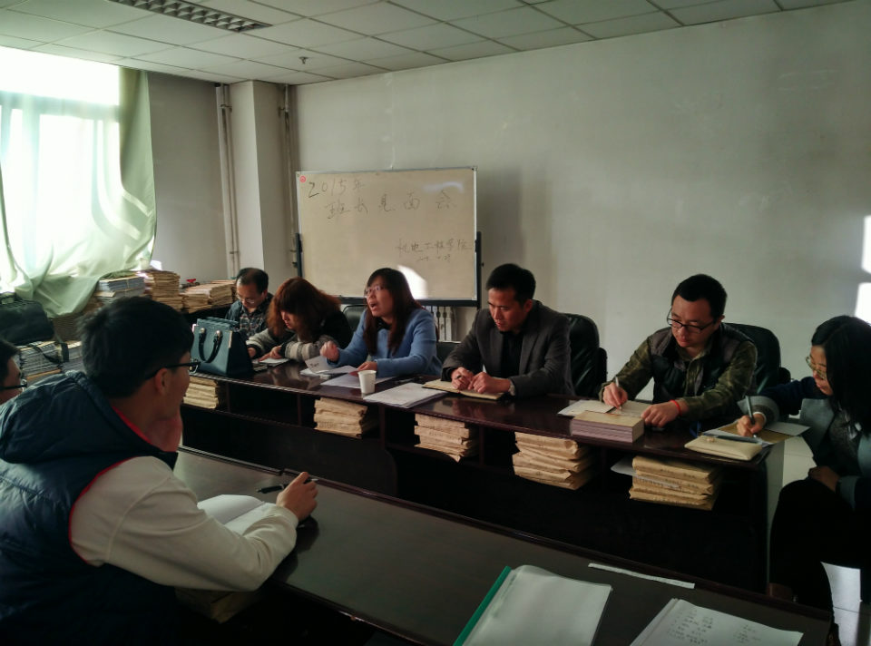 召开了14/15级班长见面会。出席这次会议的有:党委副书记刘光老师、学生科科长张丽花老师、学生科段雪倩老师、学生科杨博炜老师、学生科祁亚芳老师。