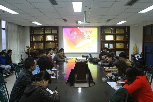 在主楼10层会议室举行了12、13级班长见面会。党委副书记刘光老师、学生科科长张丽花老师、学生科段雪倩老师、杨博炜老师、祁亚芳老师共同出席了此次见面会。