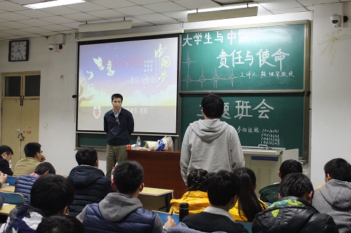 学生做关于“大学生与中国梦·责任与使命”的主题班会。熟女av