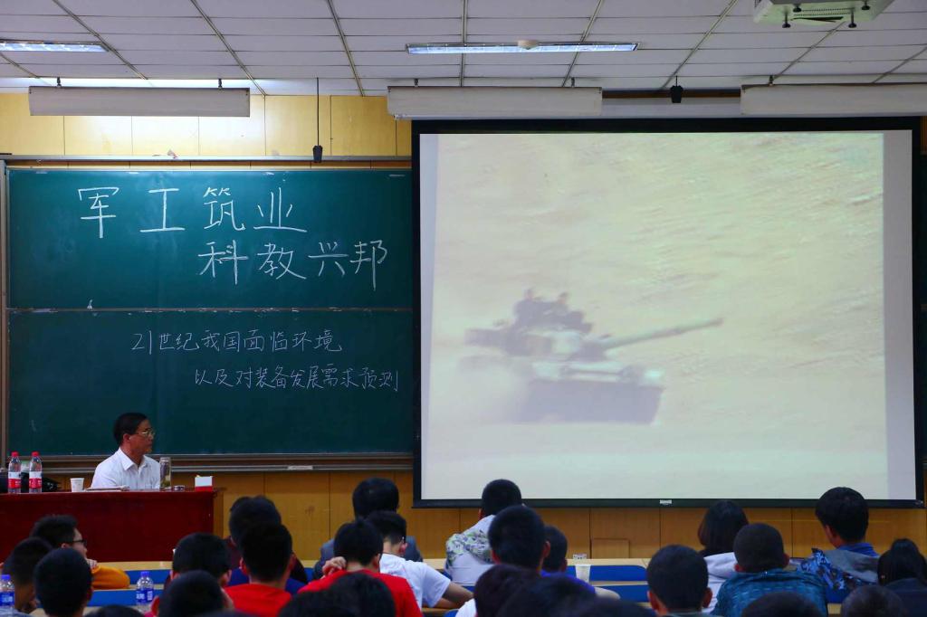 孙子曰:“兵者,国之大事,生死之地,存亡之道,不可不察也。”潘玉田教授说:“国际风云变幻,武器装备非常重要,国之重器,国之根本”。潘教授的讲座围绕国际形势、中国安全形势、我国的武装力量及军工常规兵器等几个方面展开。他为我们分析了当前国际形势的变化和我国的安全形势及所处的国际环境。关于我国的武装力量及军工常规兵器方面的状况,潘教授先为我们讲解了国之重器——火炮,然后又分别从陆海空三个方面为我们概述了我国的军事装备的发展情况,辅之以视频,为我们系统的介绍了世界上的一些常规兵器,以及我国较为先进的武器装备。同时,潘教授还为我们讲述了军工事业前辈们的事迹,他们既特殊,又朴实。他们突破一道道技术难关,完成一项项攻坚任务,专注科研,超越自我,值得我们学习、尊敬。