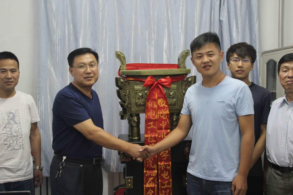 学院党委书记徐建军和2012级毕业生代表及毕业党员代表共同为捐赠的纪念品揭幕。本届毕业生为感恩母校,感谢师恩共同向学院捐赠的一尊四足方鼎,全体毕业党员向学院党委捐赠了一幅八骏图挂屏,这两件纪念品表达着毕业生们对母校的感激之情,也表达着他们希望母校继往开来、再创辉煌的祝福。仪式上,徐书记代表学院接收了2012级全体毕业生和毕业党员捐赠的纪念品,徐书记和毕业生代表和党员代表逐一握手并合影留念,徐书记代表学院送去了母校对他们的感谢和祝福。