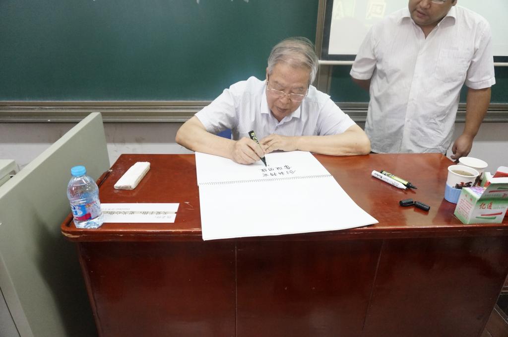 王院士从素质培养、能力培养和重在业绩三个方面分享自己的经验,着重强调了工程技术人员必须具有自主学习能力、理论联系实际的能力、自主创新能力、分析研究能力、协同交流能力、组织引领能力六大能力。王院士鼓励大家要立志成才,加强学习与科研能力,为祖国国防事业的建设与发展贡献自己的力量。讲座结束后,王院士和院领导进行合影,更是亲笔题词“创新务实,奋进图强”,在座师生受益匪浅。