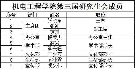 第三届研究生会主席、副主席以及各部门部长人选,现将结果公示如下: