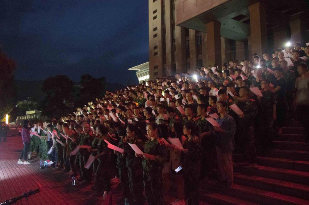 的精神风貌,把我们的精气神传递给大家。同时刘书记强调一定要科学训练,防止意外伤害。在保证合唱训练的同时,不耽误正常的军训教学,保证学生们充分休息,防止过度训练造成意外伤害或者过度劳累。看着同学们在合唱负责人的严格要求和耐心指导下,一次又一次地熟练歌词和齐整队列,刘书记对同学们的训练效果表示了认可和赞许。