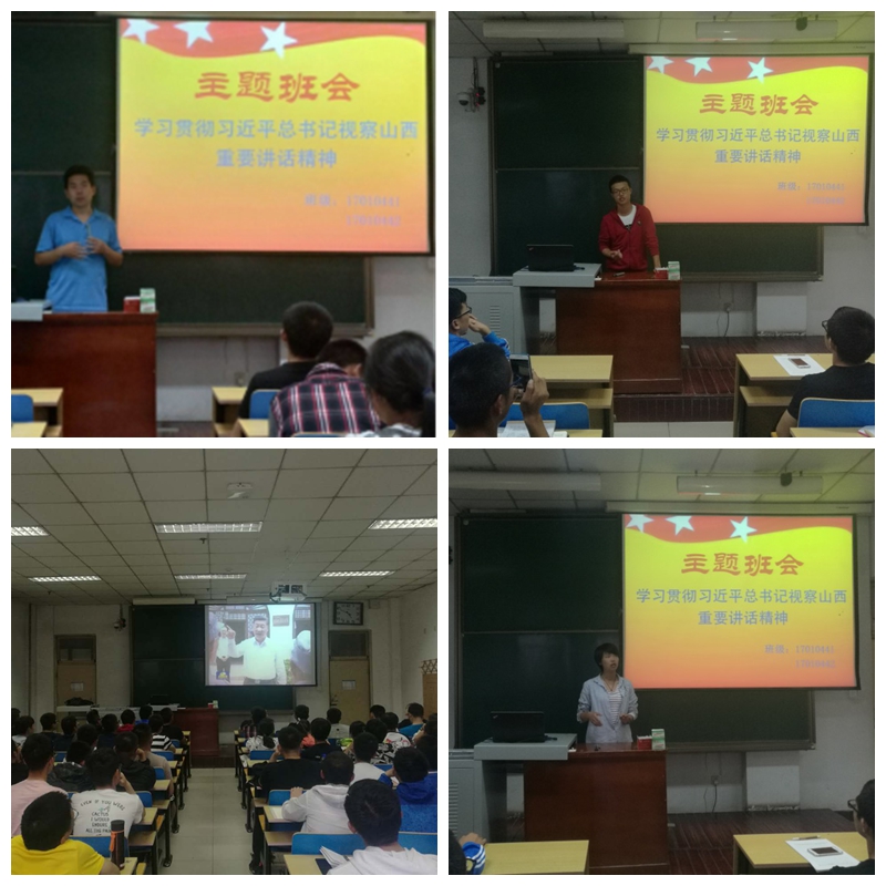首先,班主任曲普老师带领同学们学习了习近平总书记视察山西重要讲话内容。然后,同学们认真观看了习近平总书记视察山西过程中的视频资料。当看到习近平总书记深入山西革命老区和贫困农村与当地群众亲切交谈,鼓励大家撸起袖子加油干时,同学们深受感动,教教室里想起了热烈的掌声。