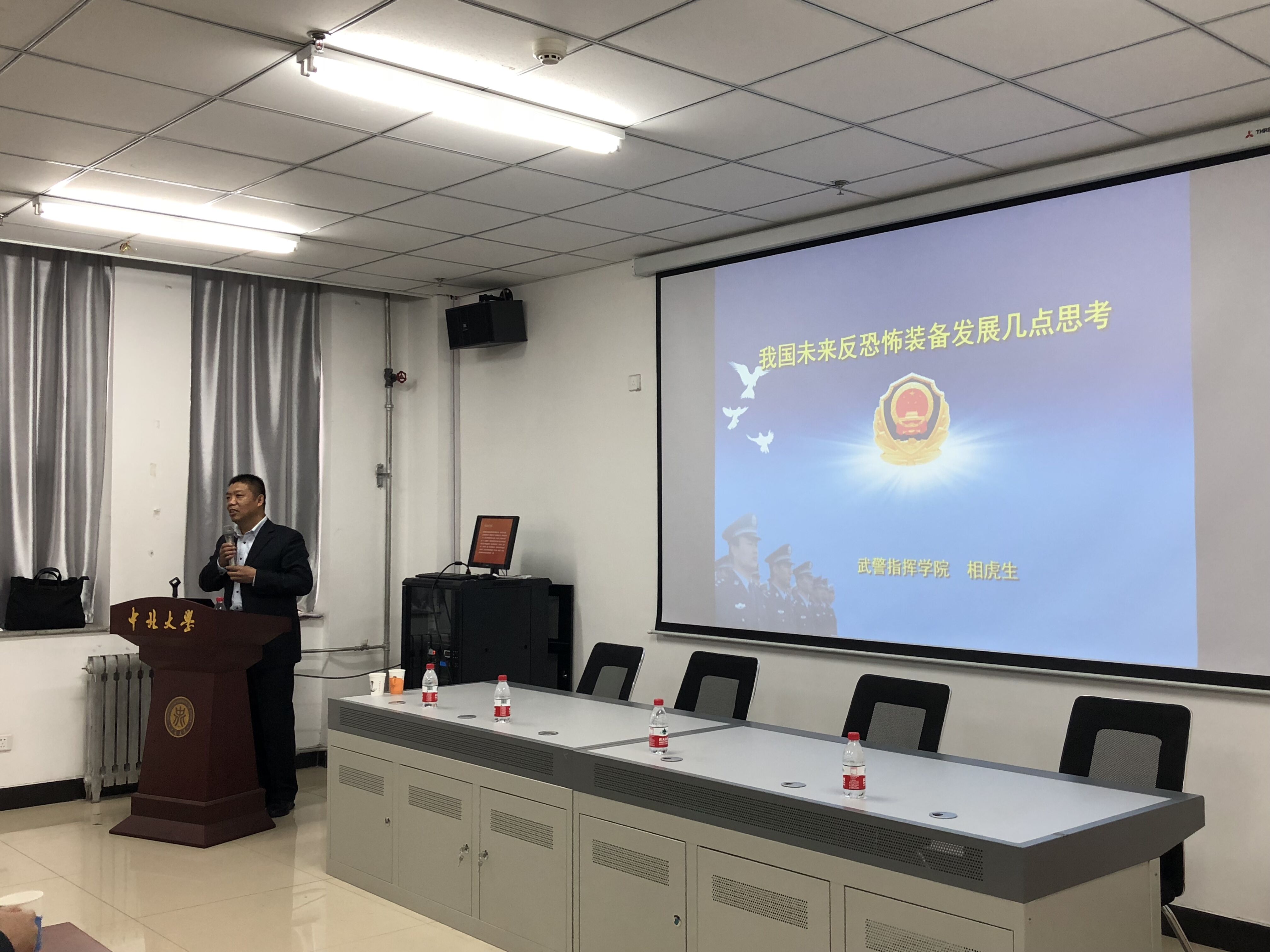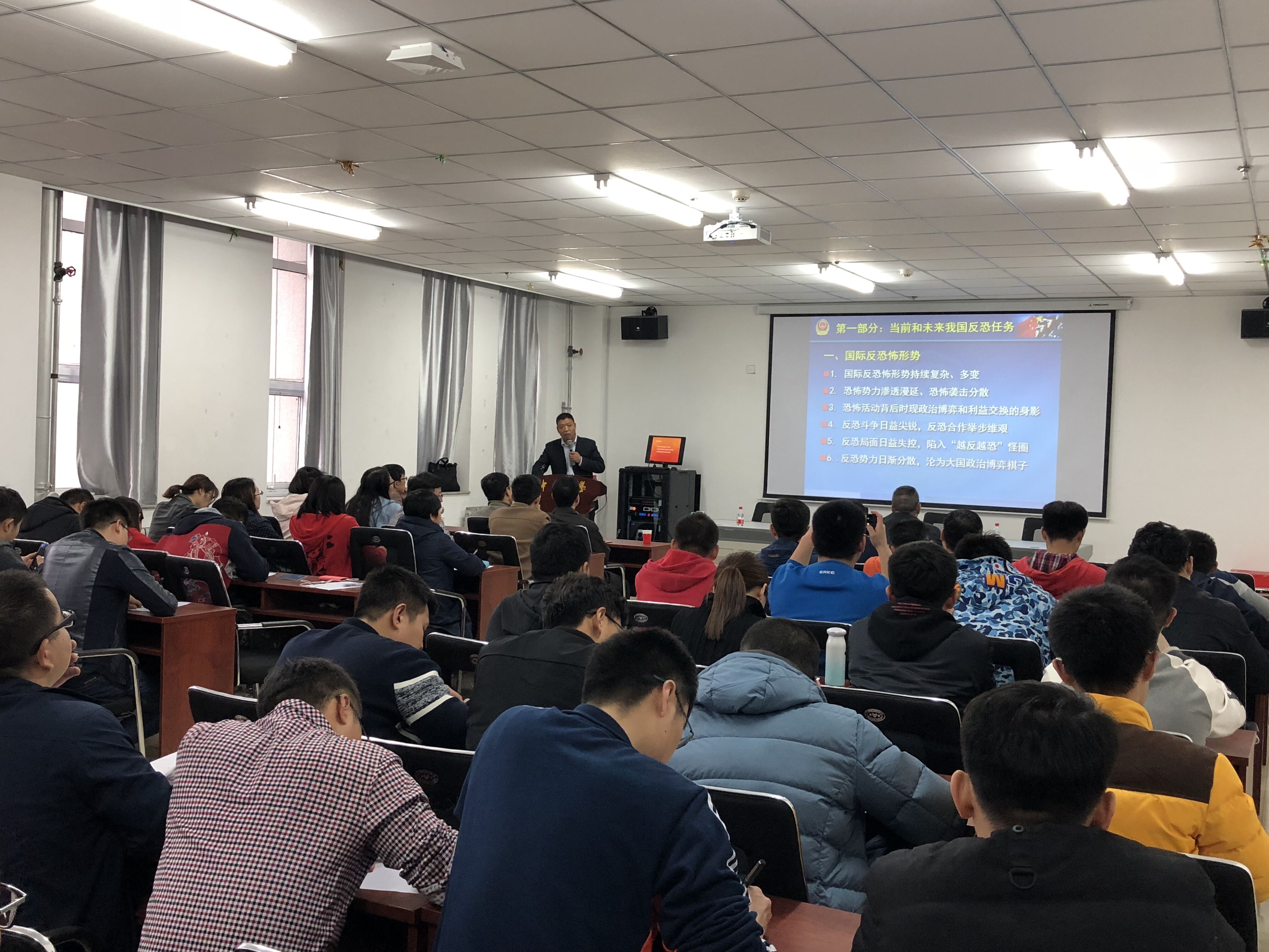 师生开展题为“防恐装备的发展趋势”的讲座。