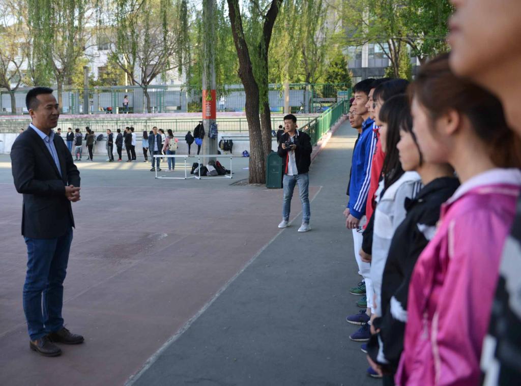 6:30,罗书记及各位老师来到操场,为运动员们加油打气。罗书记提出,运动会的结果不是最重要的,重要的是这个过程,在训练中,希望大家可以收获很多。同时刘书记也为运动员们加油打气。李晶晶老师与同学们进行一对一交谈,对同学们努力训练的精神表示赞扬。