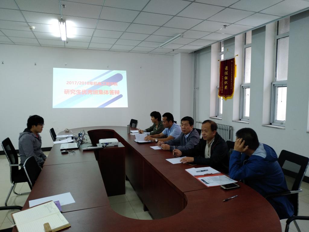 召开2017/2018学年研究生优秀班集体评选会,院党委副书记刘光老师、学科部主任高跃飞老师、关世玺老师、科研科老师、2016级主要班干部参加了评选会。