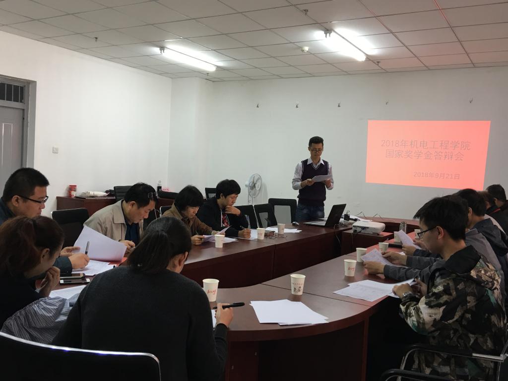 举行2018年度研究生国家奖学金评审答辩会议,评审委员会由学院领导、学科部主任、导师代表、各科室负责人、研究生代表组成,研究生辅导员王丙龙老师主持。