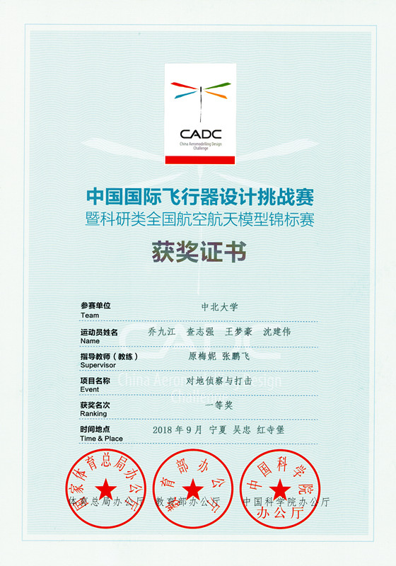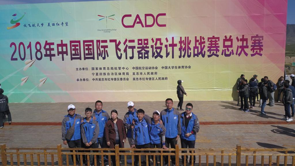 9月24日-9月30日,由国家体育总局航管中心、中国航空运动协会、中国大学生体育协会、宁夏回族自治区体育局、吴忠市人民政府联合主办的2018年中国国际飞行器设计挑战赛总决赛暨科研类全国航空航天模型锦标赛(CADC)在宁夏红寺堡罗山飞行营地隆重开赛。来自北京航空航天大学、哈尔滨工业大学等近百所高校、1900余名大学生航空运动爱好者汇聚宁夏红寺堡罗山飞行营地。经过为期一周的激烈角逐,我校航模队乔九江、查志强、王梦豪、沈建伟小组和王琪、温新、陈亚琦、王毅小组分别斩获“对地侦察与打击”项目团队一等奖和三等奖,我校航模队首次获得优秀团体奖。