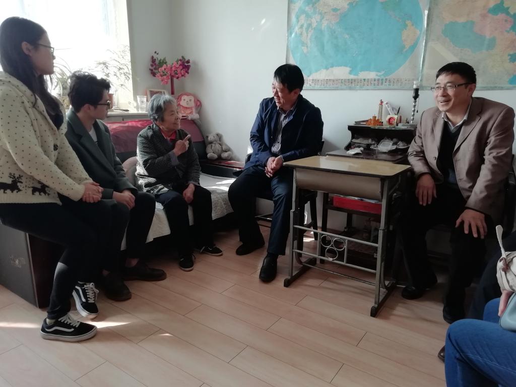 金秋十月,天高气爽,彩云追月,人寿花香。值此重阳佳节即将到来之际,学院党委书记罗建国,副院长李世中、副书记刘光、工会主席崔俊杰、教学科科长李霞、捐助奖学金获得者等人代表全院师生来到王靖君、段维民、葛双喜、赵捍东、崔志琴等几位退休老教师和生病教师身边走访慰问,送上广大师生的祝福,祝福老教师们重阳节快乐,健康长寿,祝愿生病的老师保重身体,早日康复。