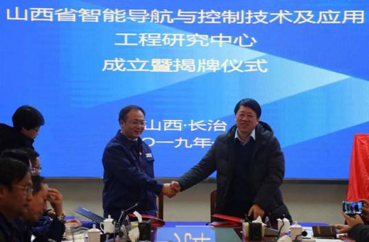 与中国兵器淮海工业集团共创成立的“山西省智能导航与控制技术及应用工程研究中心”在长治举行揭牌仪式。