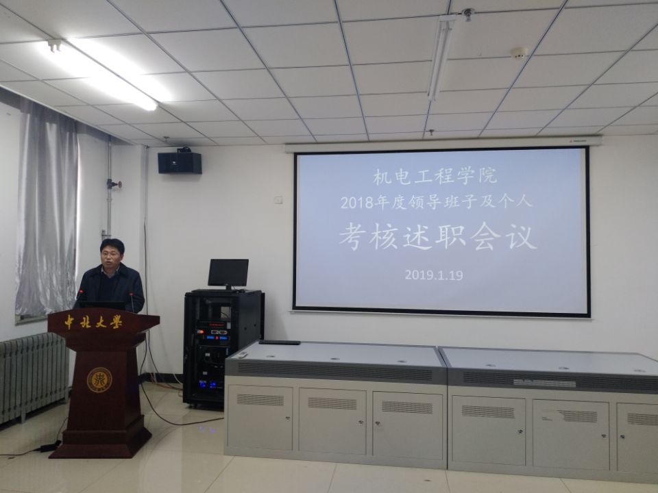 在科学楼812会议室召开2018年度领导班子及个人考核述职会议,由校党委组织部部长贾献忠、审计处处长孟建新、学生处处长尹建平、离退休人员管理处处长刘彬、纪委监察处副处长史育红等人组成的考核组成员及学院领导班子、全院教职工参加会议,贾献忠部长主持会议。