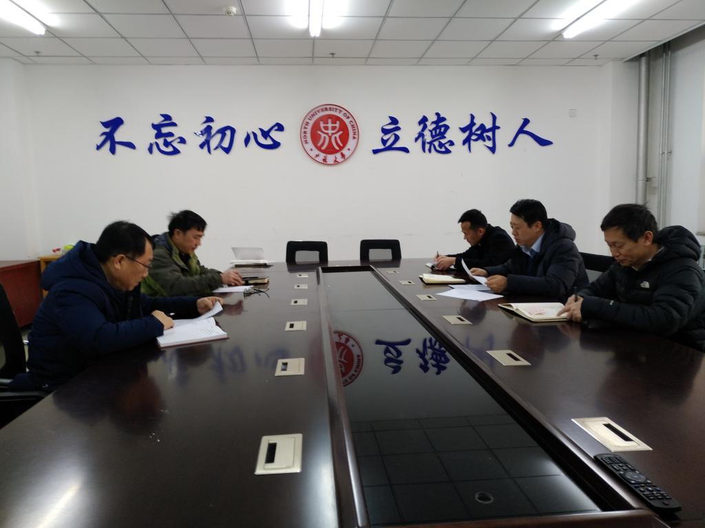 领导班子在科学楼313会议室召开2018年度民主生活会,会议以“强化创新理论武装,树牢‘四个意识’,坚定‘四个自信’,勇于担当作为,以求真务实的作风坚决把党中央的决策部署落到实处,在紧密结合山西‘两转’基础上,全面拓展新局面的使命任务和高等教育发展工作实际,努力开创我校改革发展事业新局面”为主题,学院党委书记罗建国、院长王志军、副书记刘光、副院长李强、李世中参加,罗建国书记主持会议。