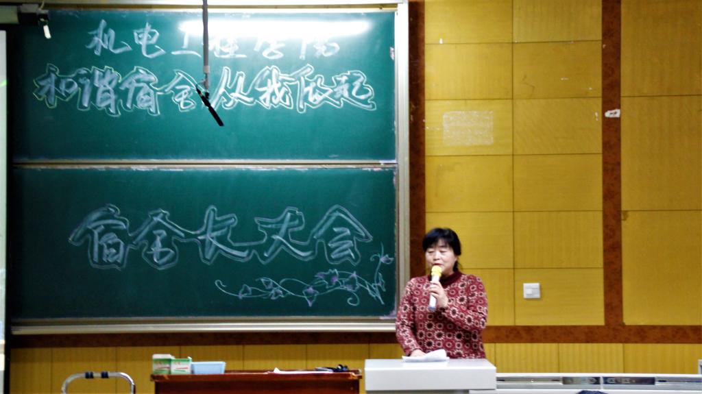 大会在庄严的国歌中拉开了序幕。学生科科长张丽花为此次大会致开幕词。她首先对本学期“垃圾下楼”活动的贯彻落实予以了充分肯定,对日后大家更加积极地配合学生科工作表达了殷切期望;同时强调了建设和谐宿舍的必要性,并从宿舍卫生、宿舍安全、宿舍人际关系和宿舍氛围等方面对同学们提出了要求和具体建议。张丽花老师特别指出舍长要发挥好模范作用,以身作则,与老师和学生干部们齐心协力,共同营造良好的生活学习氛围。