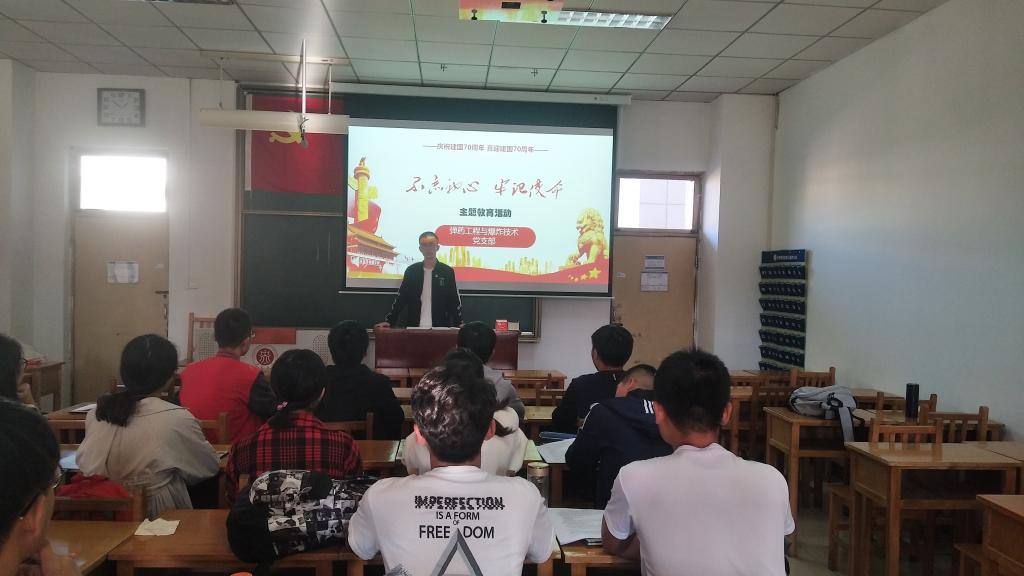 为深入学习贯彻习近平总书记关于“不忘初心、牢记使命”主题教育的重要讲话精神,贯彻落实主题教育的总体要求,2019年9月24日16时40分,弹药工程与爆炸技术专业党支部在11401T教室开展了“不忘初心、牢记使命”主题教育党日活动。弹药工程与爆炸技术专业党支部副书记白艳春主持会议,支部党员及预备党员17人参加会议。