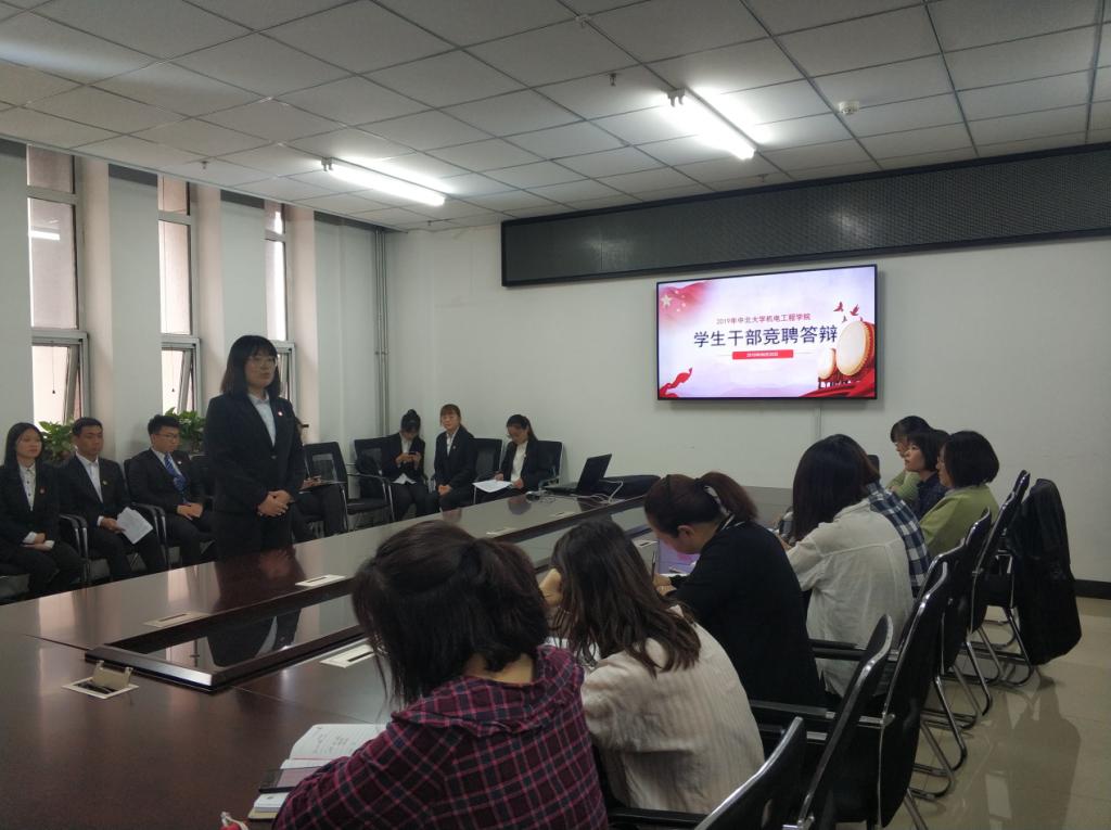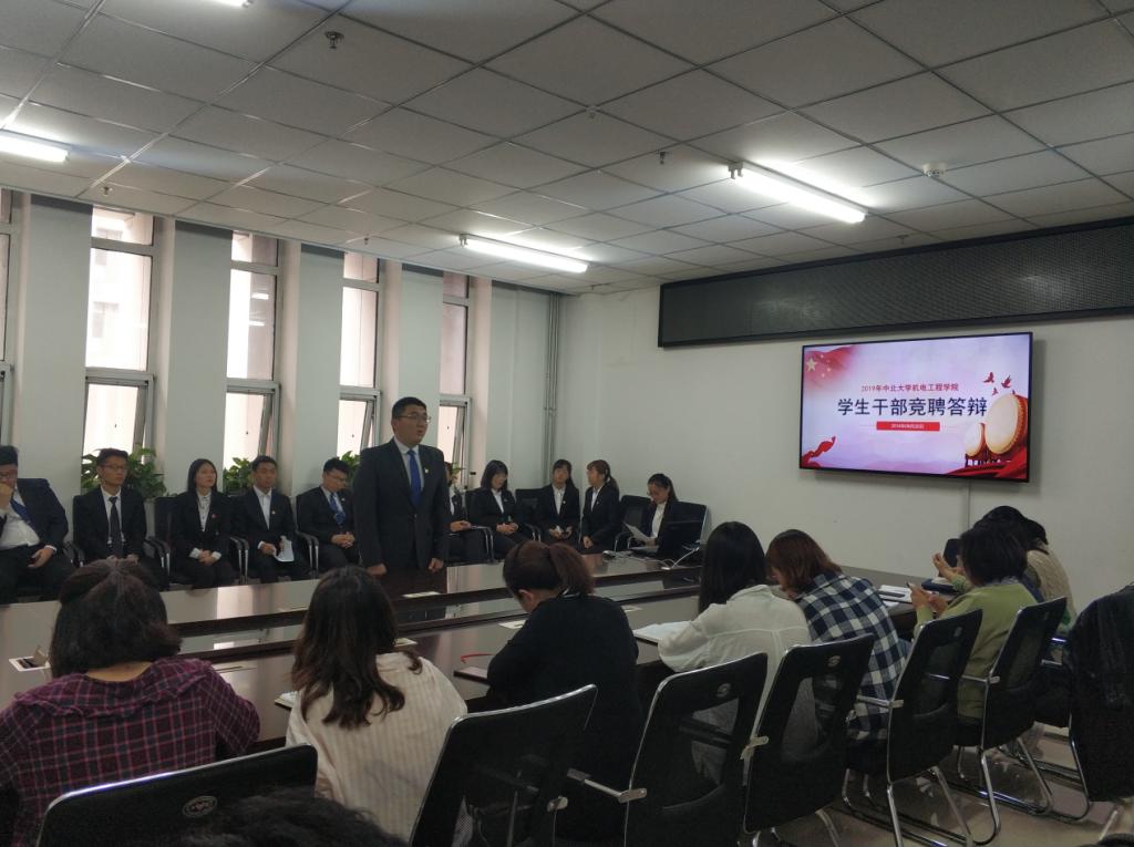 本次竞聘答辩主要面向2019年度学生组织部长以上岗位。首先,竞聘学生会主席团成员的6位同学开始了他们的答辩,除一位同学目标职位为学生会主席,其余同学则结合自身实际情况与在学生会工作获得的经验,选择了各部门分管主席。期间,各位老师就日常工作、活动筹划等方方面面进行了提问,并向同学们讲解了账目规划、会议筹备等相关知识。