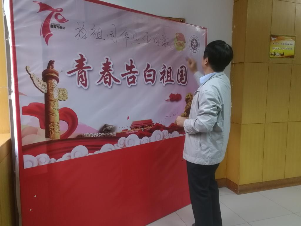 随后,院党委书记罗建国老师作总结发言。罗书记结合我国发展历史,讲到当今中国之繁荣昌盛来之不易,作为党员,要时刻牢记为人民谋幸福,为祖国谋复兴,刻苦钻研专业知识,为祖国的建设添砖加瓦。随后罗建国书记在表白墙上深情写下了对祖国的美好祝福!