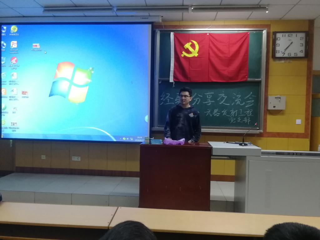 武器发射工程专业党支部在09203教室开展了党员联系班级活动。参与本次活动的班级有兵器一、二、三班。本次活动由支部副书记薛淑娟同志主持,杨雪,付国栋,张泽健三位学生作为经验分享人出席了本次活动。
