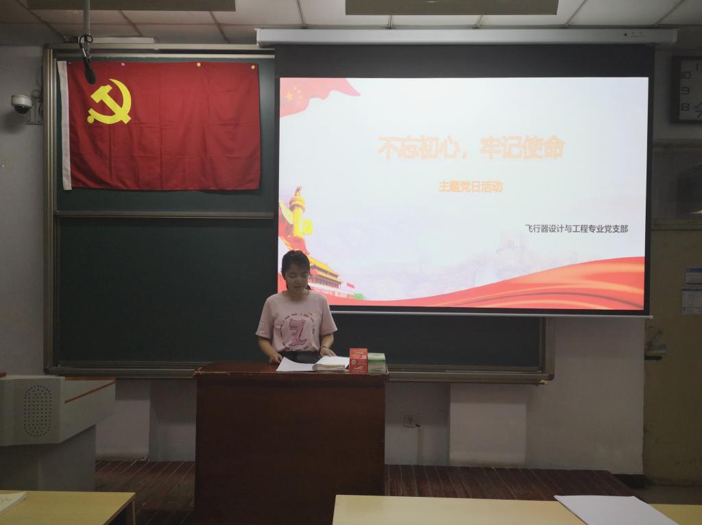 为进一步加强“不忘初心、牢记使命”主题教育、弘扬爱国主义精神,飞行器设计与工程专业党支部于2019年9月26日在11111H举行了“不忘初心、牢记使命”主题党日活动,支部所有在校成员均参与了此次活动,活动由支部副书记靳亚男主持。