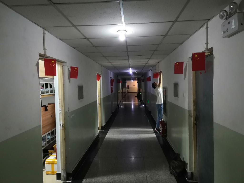 9月30日晚,在校党员携带提前准备的小国旗前往支部党员宿舍以及支部负责的各19级新生宿舍,通过悬挂小国旗来庆祝祖国母亲生日的到来。党员和新生们很快将小国旗插在了宿舍门框上,门上的两面小国旗与其他宿舍门上的国旗给宿舍营造出了浓浓的国庆氛围,也加强了支部与大一新生之间的联系。