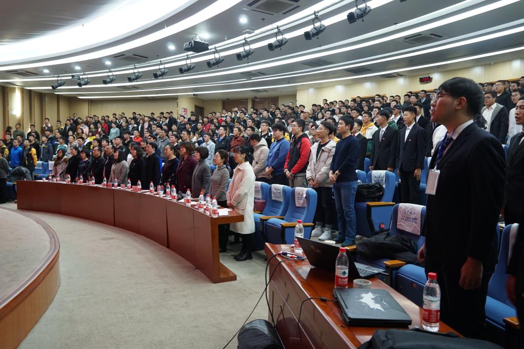 的青春风采。此外,各班班长向在场师生介绍了班级建设的出发点和着力点,提出了学风建设、思想道德建设、文体素质建设、班风班貌建设等多种建设方案,并着重强调了如参加社会服务、筹建班级银行、设置班级兴趣小组、组织集体自习等班级特色方案。其中19010411班将美食制作与班级建设巧妙结合,19010502利用班级同学与中北的爱情故事展示班级团结的风貌、19010405借助虚拟班级人物“小五”动态讲述奋斗历程,19010401班的答辩则极尽铿锵有力,19010s01班则把机器人搬上舞台科技感十足,各班班长以虚实结合、感情与制度两条主线叙述班级建设的故事,船长、机长、国潮、科技、创新这些独特的词汇获得在场所有同学的一次次掌声。各班在答辩中还间穿插了集体口号、才艺表演、情景话剧、宣誓、三维动画、蒙太奇混剪等多种独特、新颖的手法,向全院师生展示了三个月来的班级建设成果,并对未来做出了展望。嘹亮的口号和歌声,震撼的动画和特效,激情澎湃、张弛有度的演讲,给现场观众带来了一场场的视听盛宴,推动现场氛围走向高潮。答辩中场全场同学合唱《夜空中最亮的星》,点点闪光灯如同那夜空中闪闪星光,“新青年唯奋斗不负韶华”的振振誓词更是将答辩推向了高潮。
