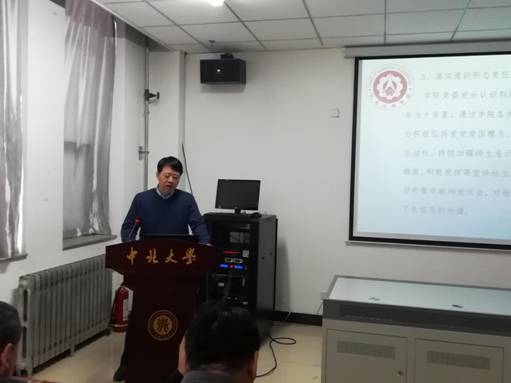 随后,王志军院长做了个人述职述廉报告,从政治思想学习、管理重点工作和教书育人等方面汇报了个人一年来的工作学习情况,希望与全院教工“凝心聚力、砥砺前行”,在来年一起努力,高质量的谋划“十四五”发展,为学校学院双一流建设做出应有贡献。