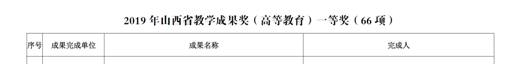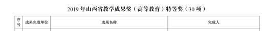 2020年1月20日,教育厅晋教师函[2019]82号文公布了2019年山西省教学成果奖获奖名单,熟女av