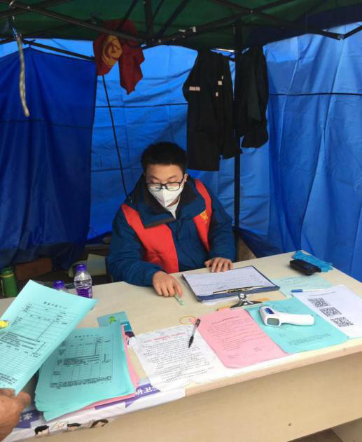 疫情来袭,院团委书记李晶晶老师带头站在防控疫情斗争的第一线,带领大家冲锋在前,为打好防疫阻击战默默奋斗着。她与社区工作人员一起值守,登记查验,排查外来人员,做到对出入人口动向清楚,对密切接触人员及时隔离观察,并掌握隔离观察人员身体情况和动向。